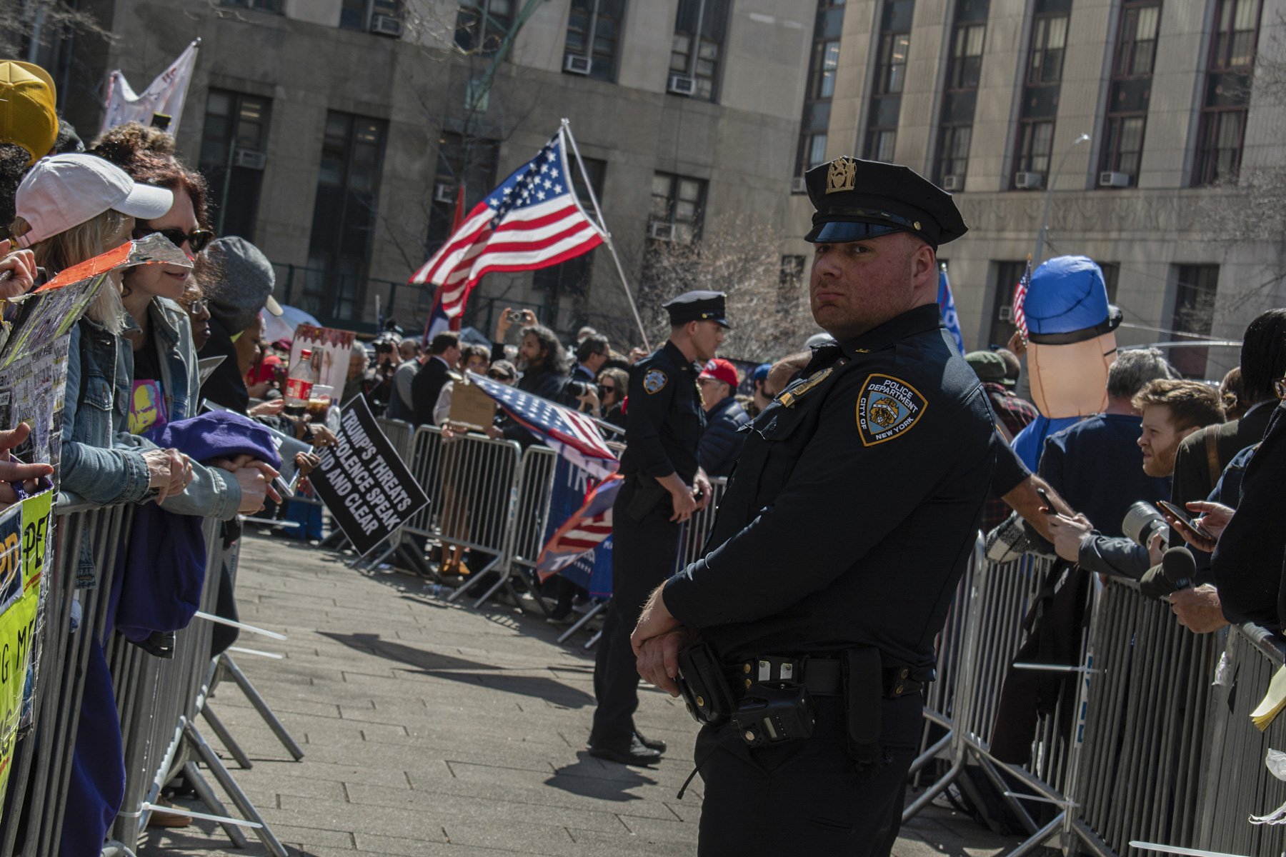 Who’s Watching Who at the Trump Indictment Apr 18 Written By Allan Kew Credit to Nina Berman’s Visual Storytelling class, 2023 Allan Kew